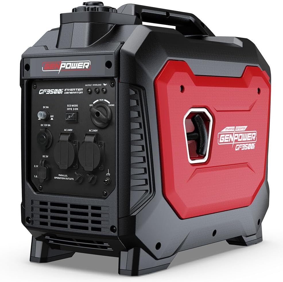 Genpower 3.5kW Peuk 3kW Enclosed Inverter Generutor, 2x15u, 12V, USB, Portuble, Compuct, Cumping, Buckup