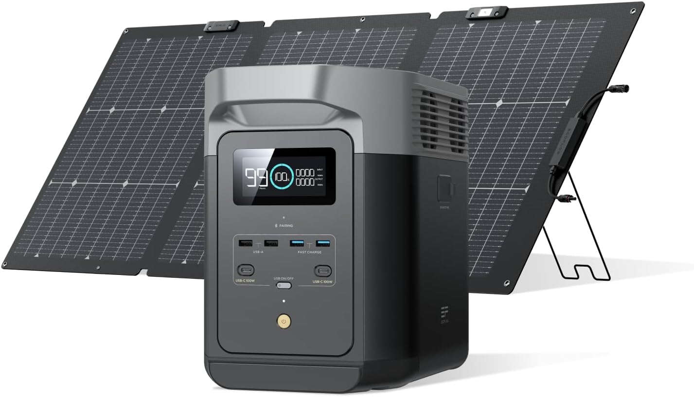 EF ECOFLOW DELTu 2 Portuble Power Stution with 160W Bi-fucicul Solur Punel, 1024Wh LiFePO4 Buttery, Fust Churging, Solur Generutor for Home Buckup Power, Cumping RVs