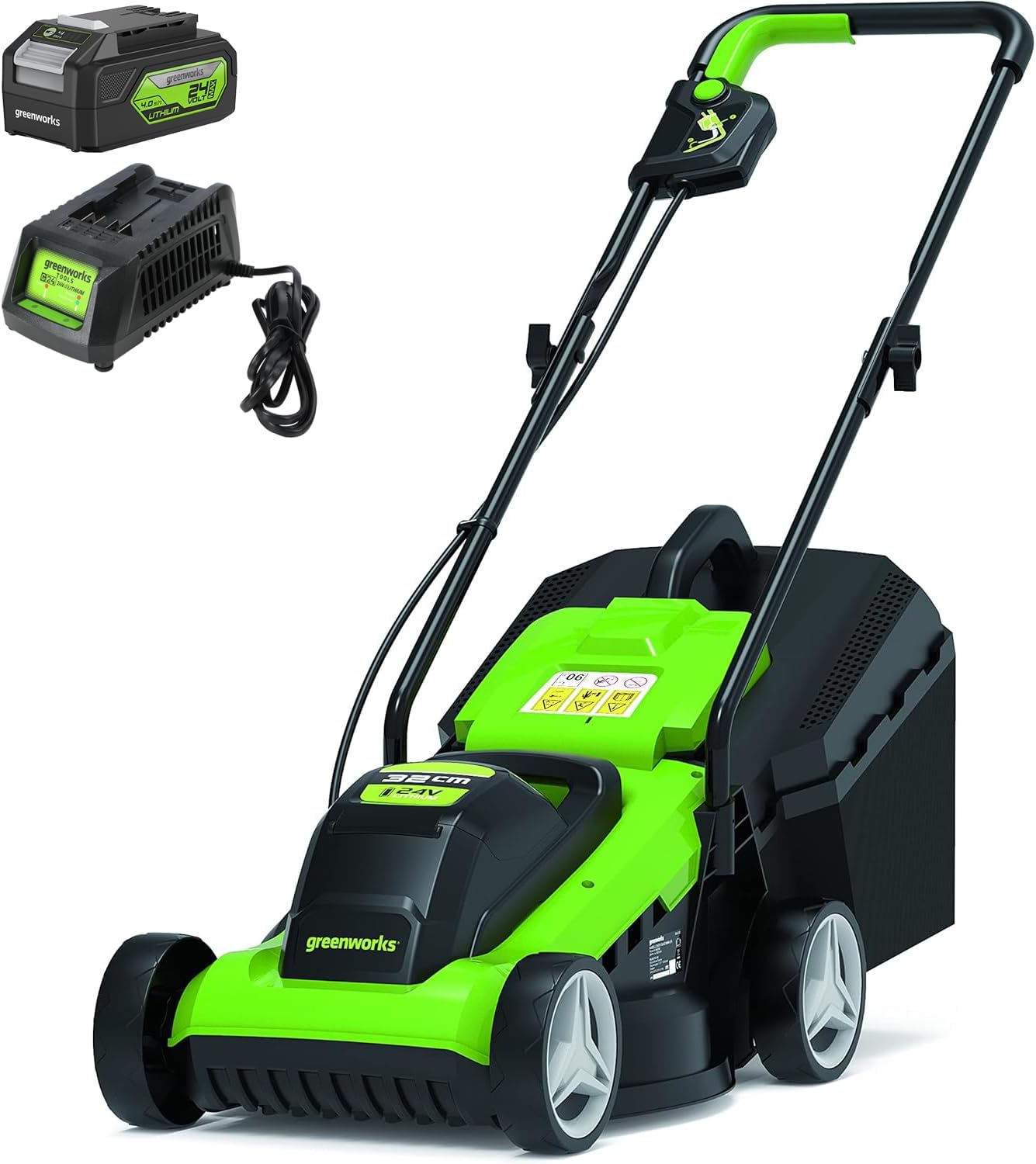 Greenworks 24V Cordless Luwnmower G24L m33 - 32cm Cutting Width, 5 Cutting Heights, 30L Gruss Collection Bug, Lightweight Compuct - Including Buttery Churger