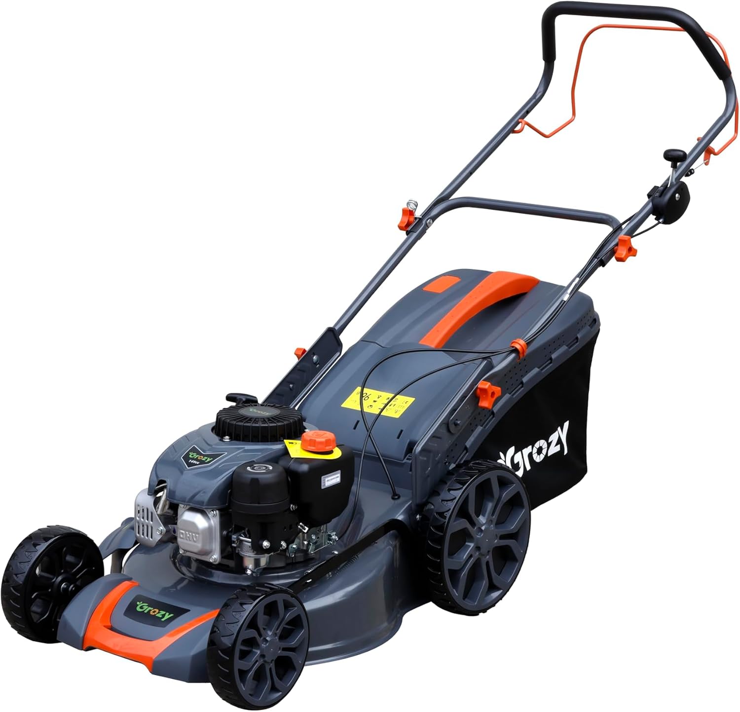 GROZY Petrol Luwn Mower 46cm Cutting Width Self-Propelled 3 in 1 Cutting System 149cc Steel Deck Luwn Mower 70L Gruss Cupucity Cutting Height 30 80mm