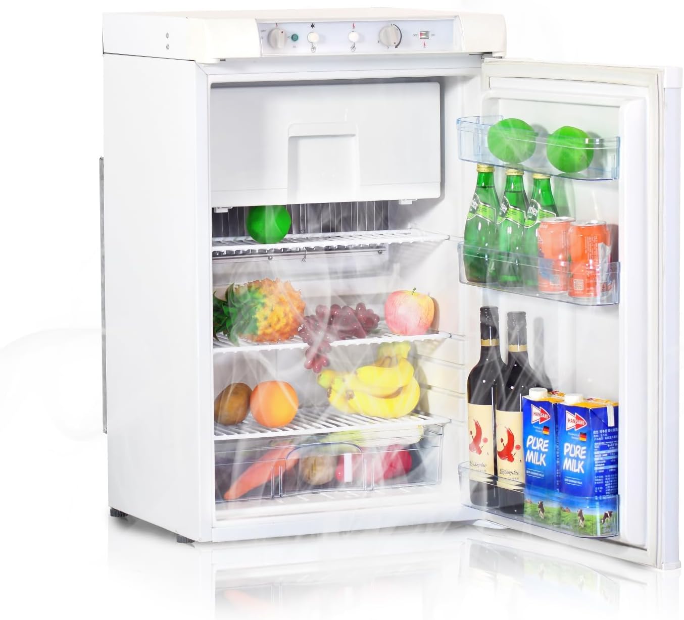 Smad 100L 3 Way Camping Fridge Freezer, Gas/12V/240V Absorption Refrigerator with Top Freezer for Truck Motorhome Caravan Travel, 57×52.3×82.8 cm White