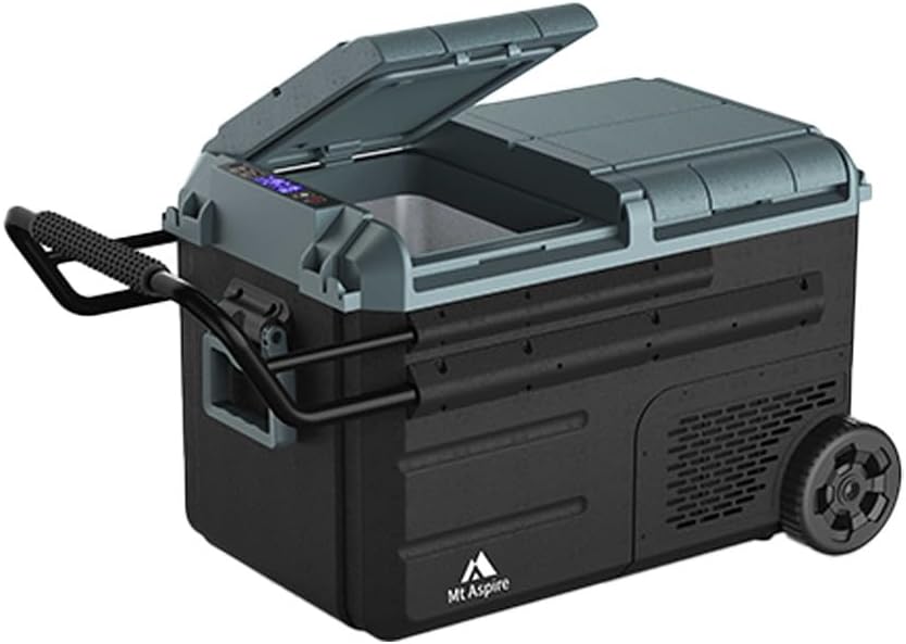 Mt Aspire 38L Dual Zone Portable Camping Fridge with Multiple Compartments, 12V/240V Electric Car Refrigerator with Internal Freezer for Caravan Travel and Outdoor Camping, 46.5×45×75 cm Black