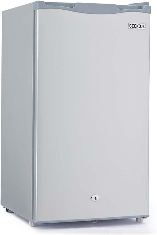 Gecko 95L Portable Upright Fridge and Freezer, 12V/24V Camping Refrigerator with Bottom Freezer for Caravan Travel, Freestanding 46×45×83 cm Silver