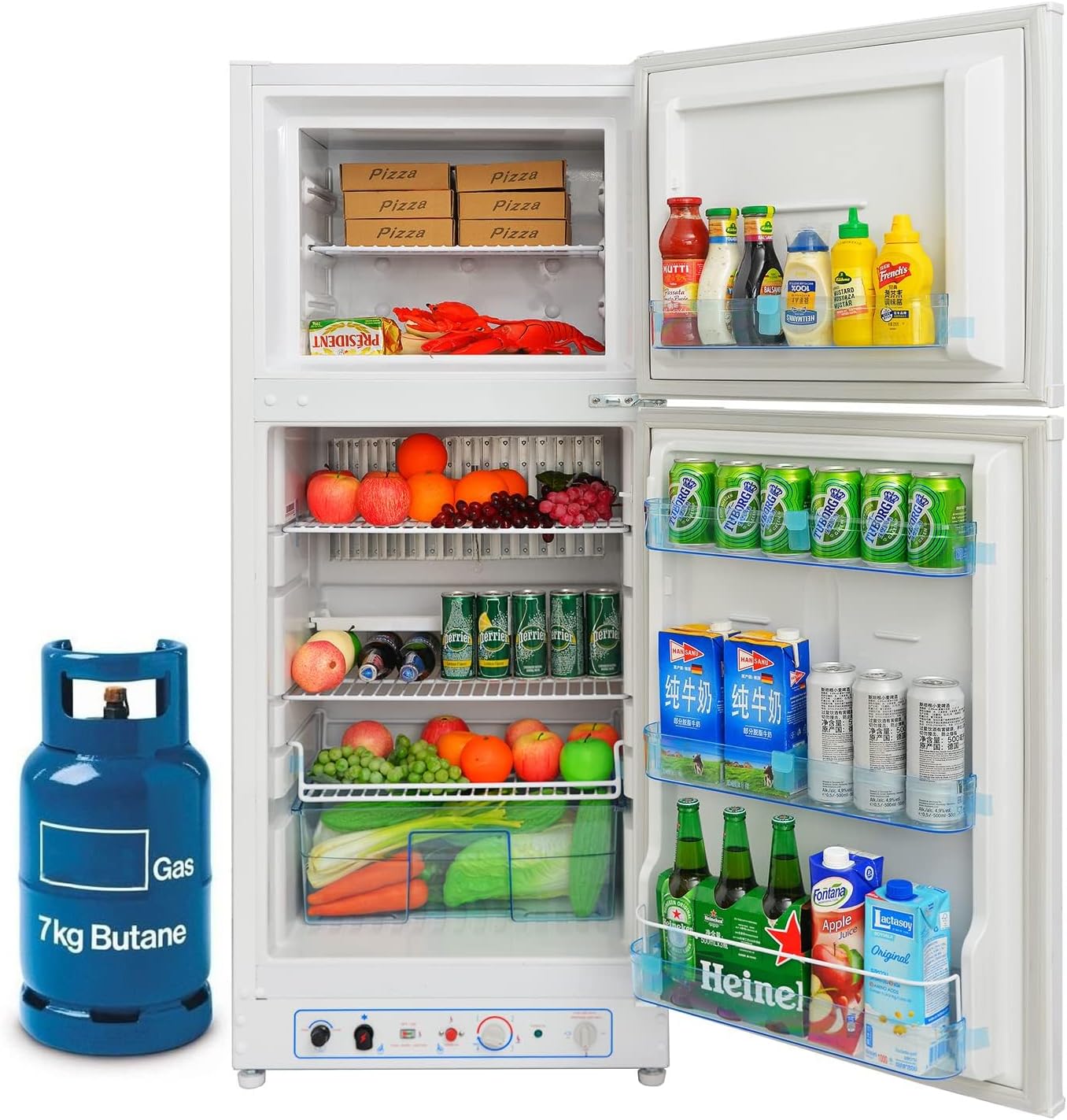 Smad 6.1 Cu.Ft Propane Refrigerator Off Grid with Top Freezer, LPG/220V 2 Way RV Fridge with Reversible Door for Cabin Boat and RV, 65×60×146 cm White
