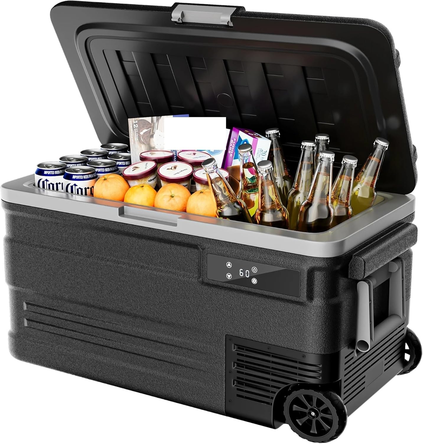 Portable Car Fridge 79QT Electric Cooler Black 12V 24V DC 110-240V AC 0F to 68F Temperature Range with Wheels
