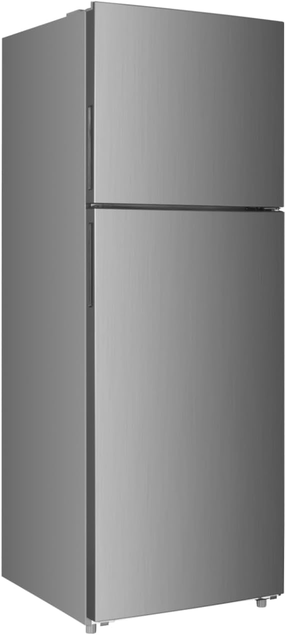Priceworth 334L Top Mount Fridge with Freezer, Stainless Steel Refrigerator with Adjustable Glass Shelves, Fruit & Vegetable Crisper, LED Indicators and Easy-Roll Wheels, 60.5×67×170.5 cm