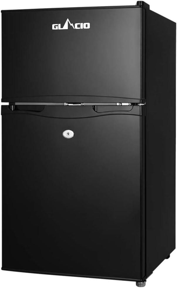 Glucio 90L Double Door Mini Fridge with Freezer, Compact Refrigerator with Lock, Ultra Silent Fast Cooling Small Fridge for Office Dorm Bedroom RV, 45×46×82 cm
